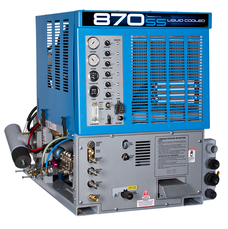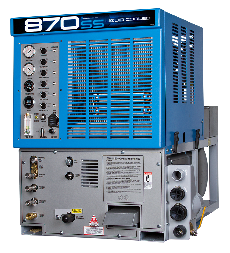 The 870 is The Beast! Delivering more heat, more vacuum and more pressure than any other unit in its class, the 870 employs premium components throughout - including the commercial-grade 1.6-liter Hyundai gasoline power plant and a tri-lobe vacuum blower. Harness this to triple-source heat cogeneration and you get powerful, consistent heat for all-day cleaning even on the largest jobs.